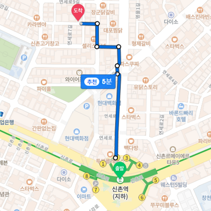 新村店-地鐵2號線「新村站」2號出口徒步5分鐘 (地址:서울 서대문구 연세로7안길 18)