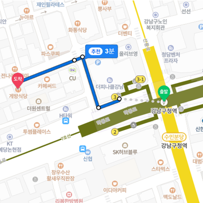 🚇交通:地鐵7號線「江南區廳站」3號出口徒步3分鐘,建議提前預約 (地址:서울 강남구 선릉로 131길 17 1층 게방식당)